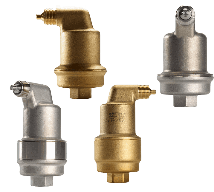 SpiroTop automatic air vents remove free air quickly and effectively. Removing free air from the system prevents component damage and system failure, reducing downtime and maintenance costs. The SpiroTop air vents are available for pressures up to 25 bar and temperatures up to 200 °C.